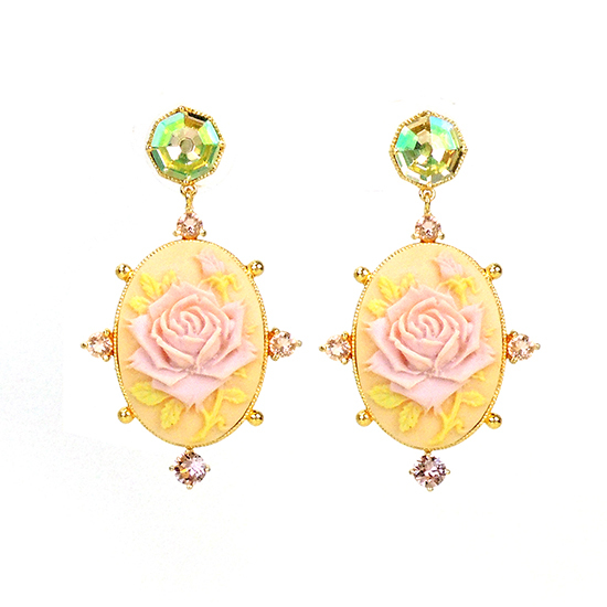 初春綻放的玫瑰花圃,不經意擦身的邂逅...粉嫩細緻的玫瑰花浮雕,搭配幻彩色澤水晶,展現典雅浪漫的風采。