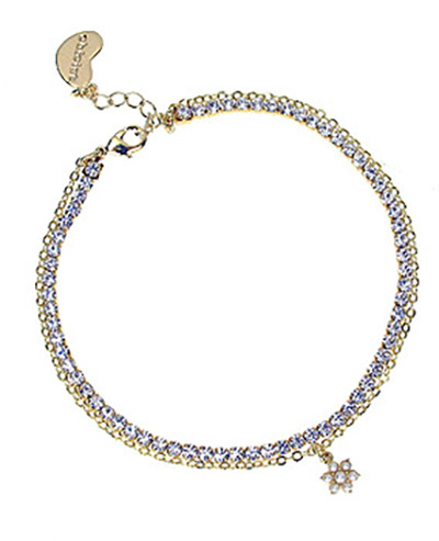 腳鍊採雙鍊設計,水晶鑽鍊搭配珍珠花型墜飾,甜美可人,散發著柔美風情!