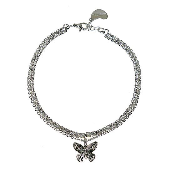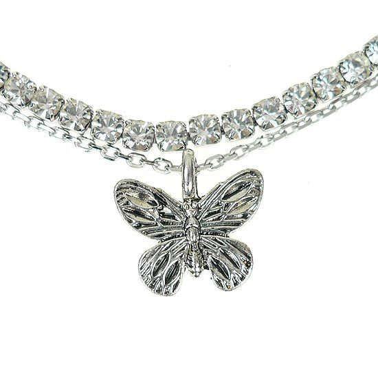腳鍊採雙鍊設計,以合金鍊搭配SWAROVSKI水晶鑽鍊,並綴有合金材質的蝴蝶墜飾,甜美可人的蝴蝶腳鍊,在您的腳踝上散發時尚多變的女性魅力!