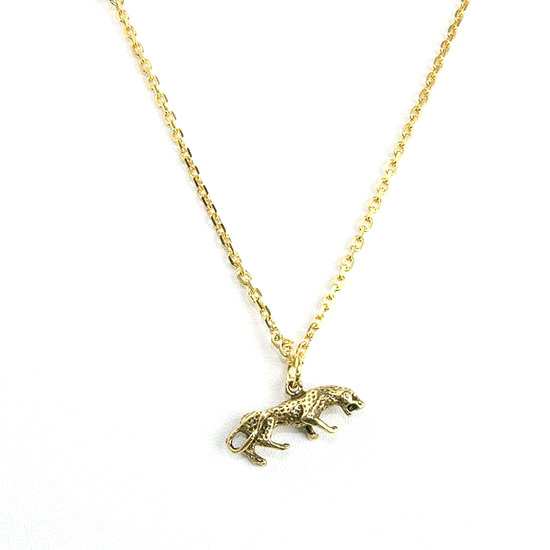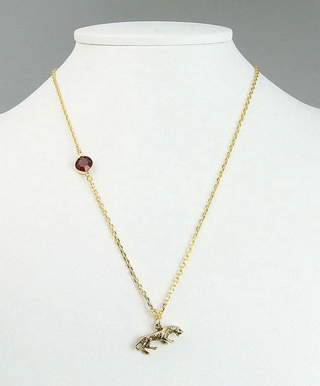 鍍金花豹墜飾、以及鍍金鍊子搭配紅色SWAROVSKI水晶,