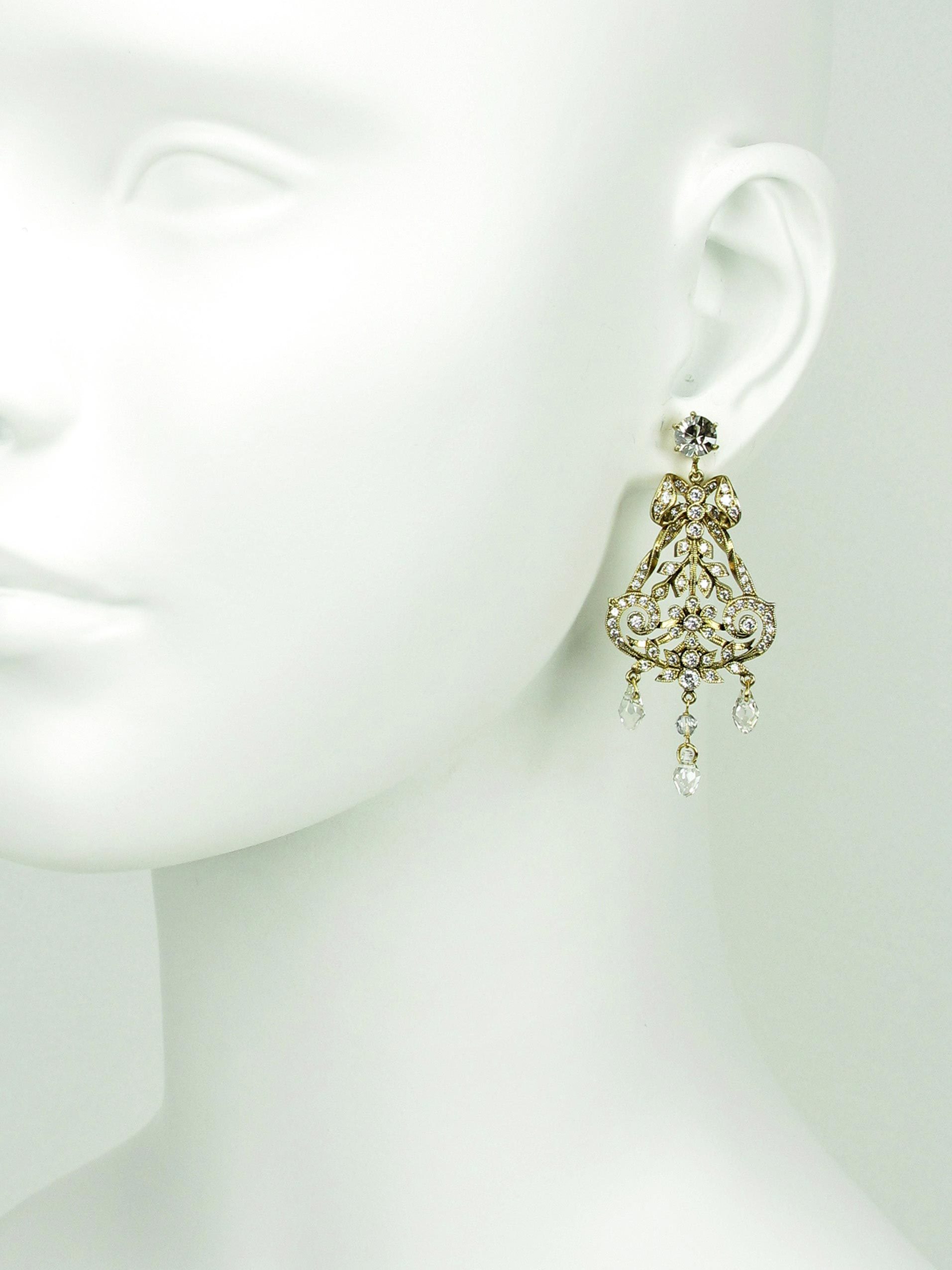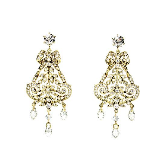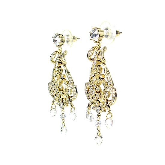 細膩唯美的墜飾並以古典釘鑲鋯石妝點的耳環,復古金色調,配戴起來曼妙迷人,呈現雋永的華美韻味!