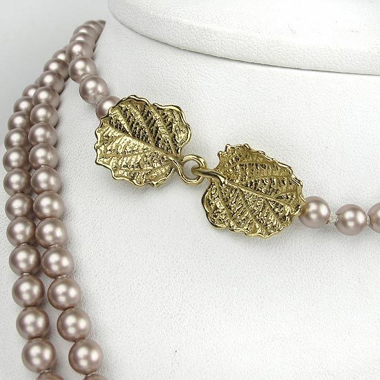 鍊身由水晶珍珠串連而成,項鍊末端綴以雅緻的葉片扣環設計,亦可依配戴者喜好與其他項鍊做多層次搭配,可繞成兩至三圈配戴,風格多變且實搭性高的水晶珍珠項鍊,是永不退潮流且女孩必備的時尚百搭單品。