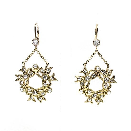 耳針為純銀鍍金材質;蝴蝶結花圈為合金材質;水晶部分採用Crystallized-施華洛世奇元素;耳環總長為1 1/4英吋;蝴蝶結花圈墜飾尺寸大小為25mm × 28mm