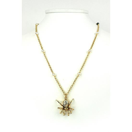 頸鍊鍊身飾以水晶珍珠、黑瑪瑙點綴,並綴以蜘蛛墜飾,上方綴有水晶鑽,帶有萬聖氣氛的華麗神秘感且亮眼獨特,佩戴起來十分時尚有型。