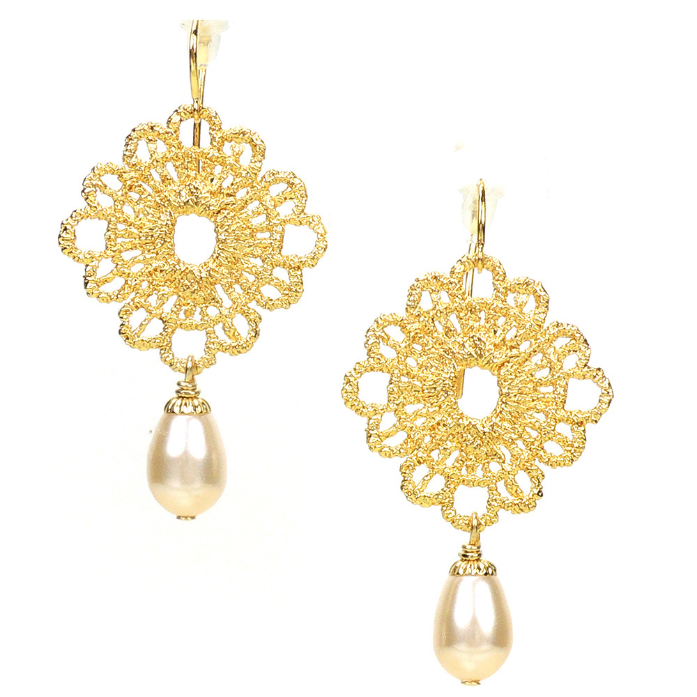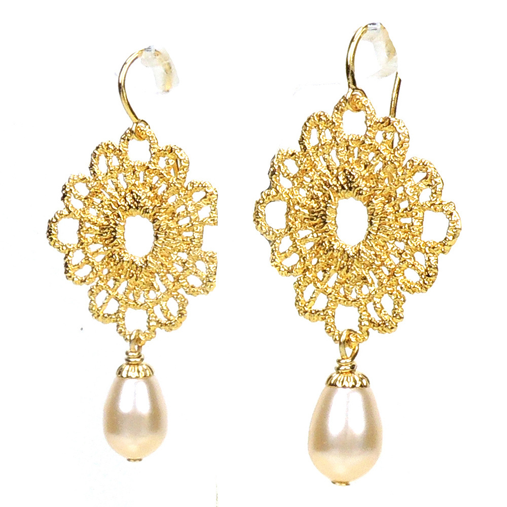 手工雕刻細緻的古典蕾絲墜飾造型,搭配水滴形珍珠,配戴起來氣質迷人。