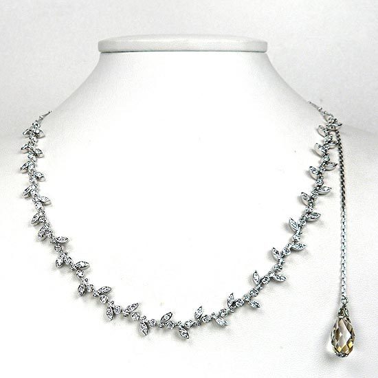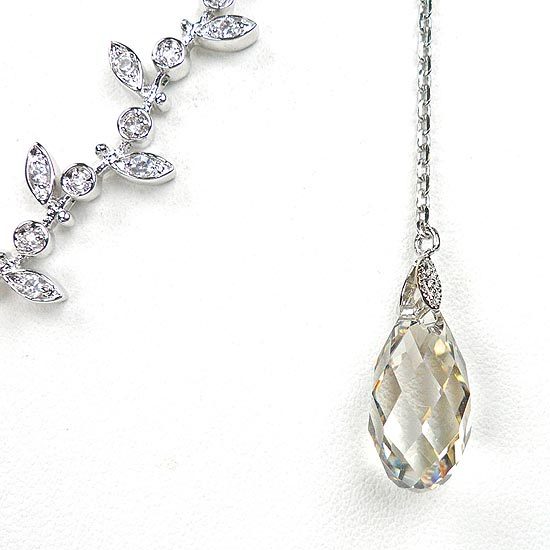 鍊身為銅鍍白K金材質;頸鍊總長為18 1/2英吋;水滴形SWAROVSKI水晶尺寸大小為18mm × 9mm