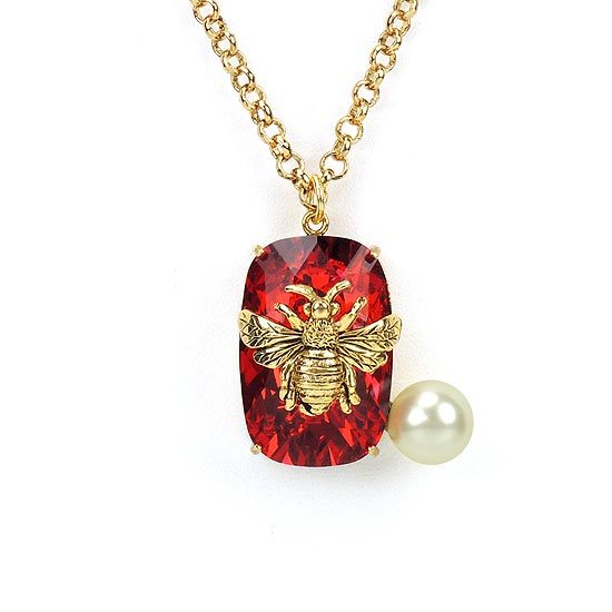 細緻的大黃蜂墜飾,與古典切面的水晶合為一體,綴以大珍珠增添俏皮風情,配戴起來時尚動人!