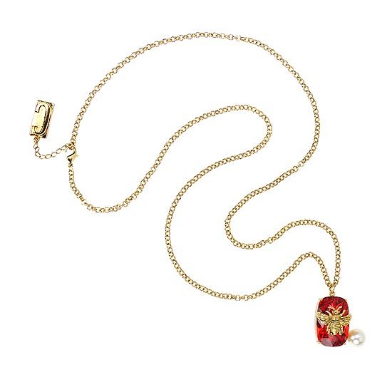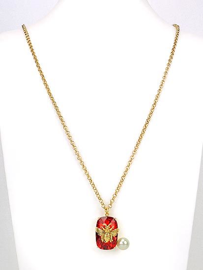 金屬墜飾與鍊身為合金鍍18K金材質;水晶以及水晶珍珠部分採用Crystallized-施華洛世奇元素;鍊子總長為29 1/2英吋;延長鍊1 1/2英吋;蜜蜂墜飾尺寸為15mm ×25mm;水晶珍珠直徑尺寸為10mm