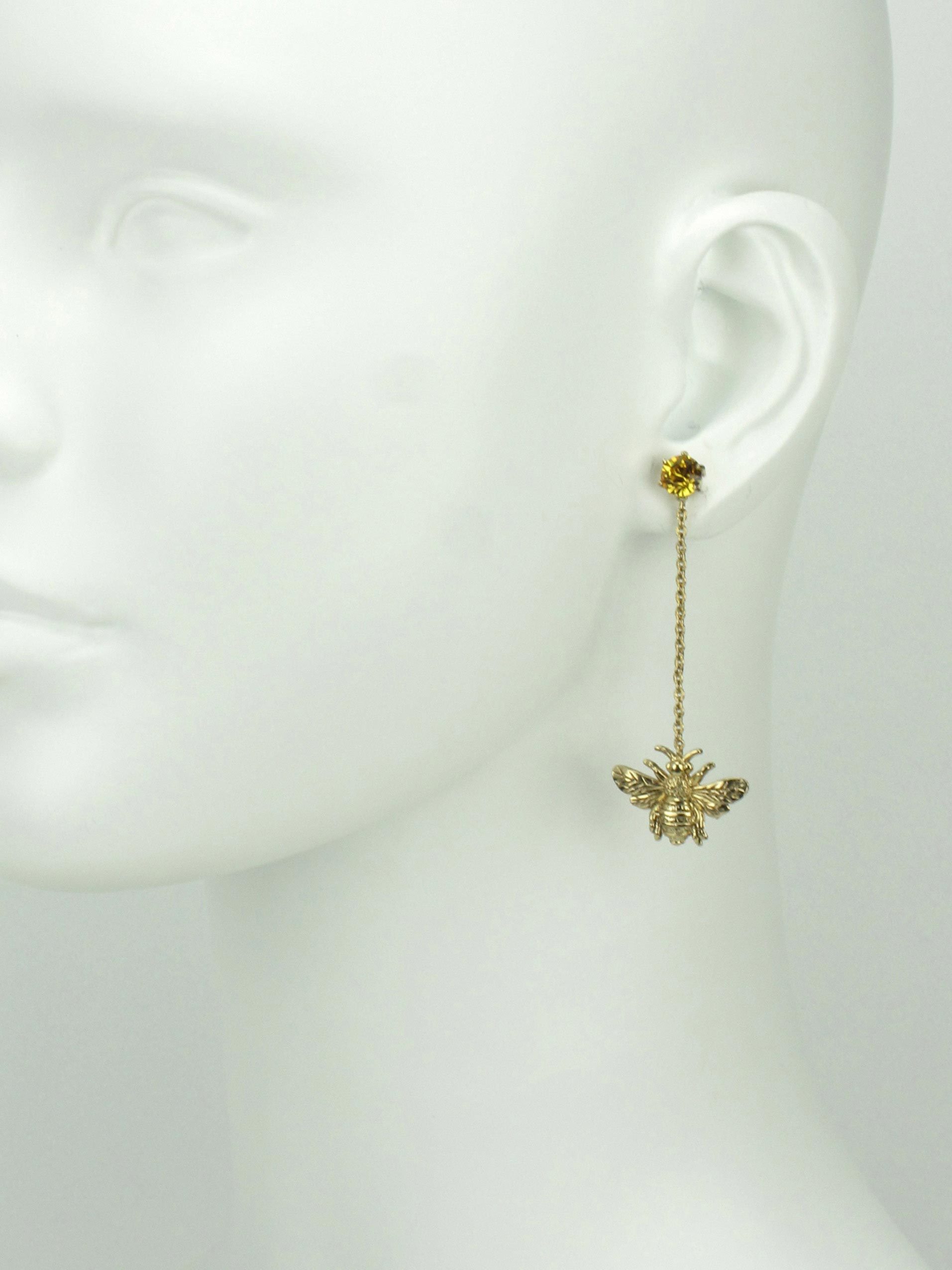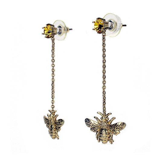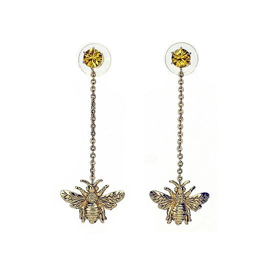 耳環綴以金黃色澤的水晶與細緻的蜜蜂造型墜飾,簡單大方並充滿童趣的設計,增添了活潑、俏麗的氣息,是女孩們不可或缺的單品。