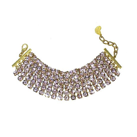 手鍊採寬版設計,綴上圓形淡玫瑰色水晶組合而成,耀眼亮麗的水晶鑽鍊,結合時尚閃亮的元素,百搭且獨具效果,無論是平日穿搭或派對宴會裝扮皆十分合適!