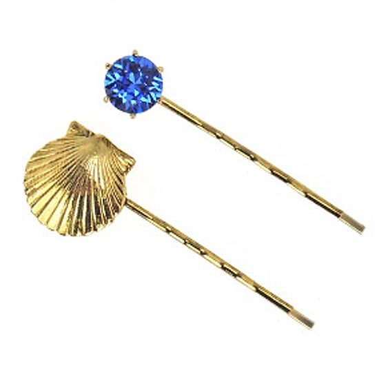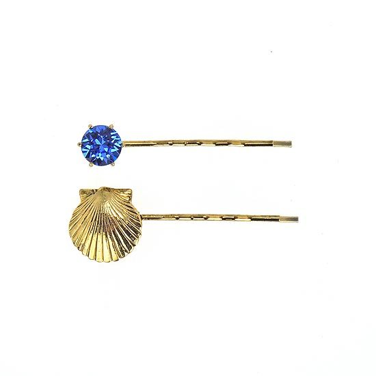 精緻的貝殼墜飾以及璀璨耀眼的水晶的髮夾套組,亦可隨個人喜好搭配,充滿綺麗的海洋風情,展現著夏日的迷人風采。