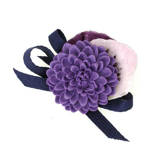 細膩的手工樹脂花朵結合花布與緞帶,點綴浪漫風情。