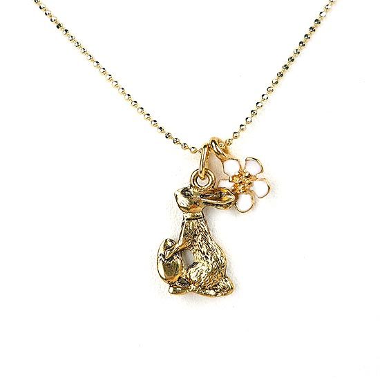 細緻的珠鍊綴以兔子墜飾搭配鍍上琺瑯色彩的花朵墜飾,充滿夢幻童話風的迷人頸鍊。