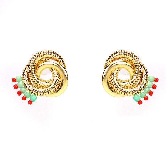金屬光圈環繞的耳環,搭配著民俗色彩的玉石,充滿魔幻阿拉伯風情,令人心動神迷。