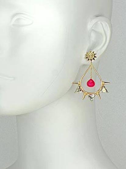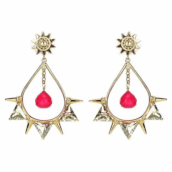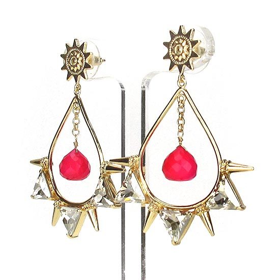 下方垂墜放射狀排列的閃耀爪鑲水晶、鉚釘及玉石,華麗中帶點叛逆的搖滾龐克風,配戴起來搶眼、有個性!