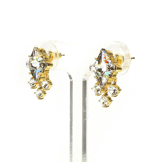 耳針為純銀鍍18K金材質;耳環金屬部分為合金鍍18K金材質;水晶材質採用Crystallized-施華洛世奇元素;耳環總長為3/4英吋。