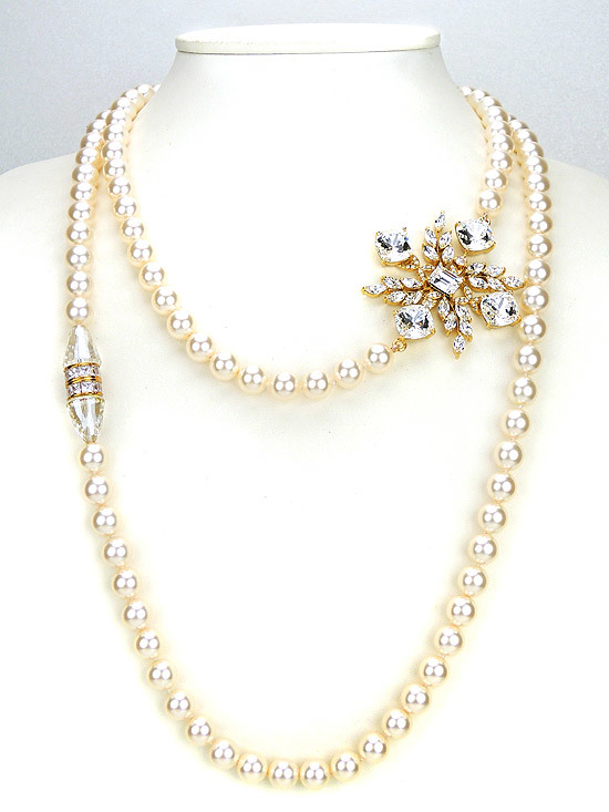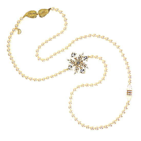 華美的金色葉子扣頭,讓珍珠長項鍊可以或長或短的佩戴,均優雅出眾。