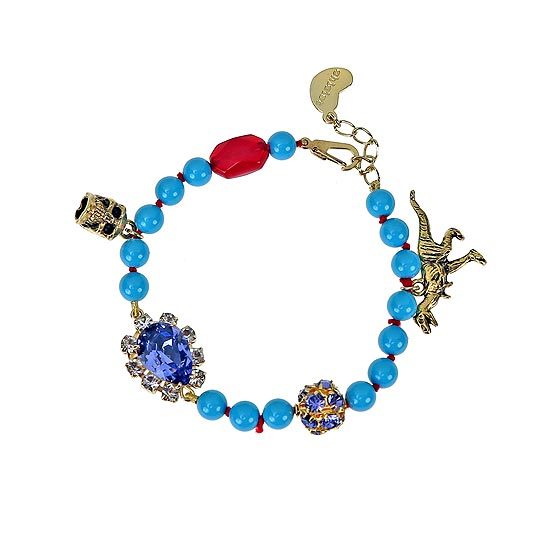 手工串珠鍊身綴有豐富的水晶、暴龍及骷髏頭等造型墜飾襯托,童趣且活潑的造型,無論單一或搭配其他手鍊都相當有存在感。