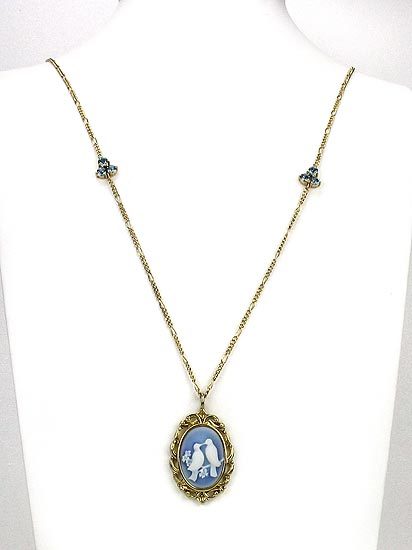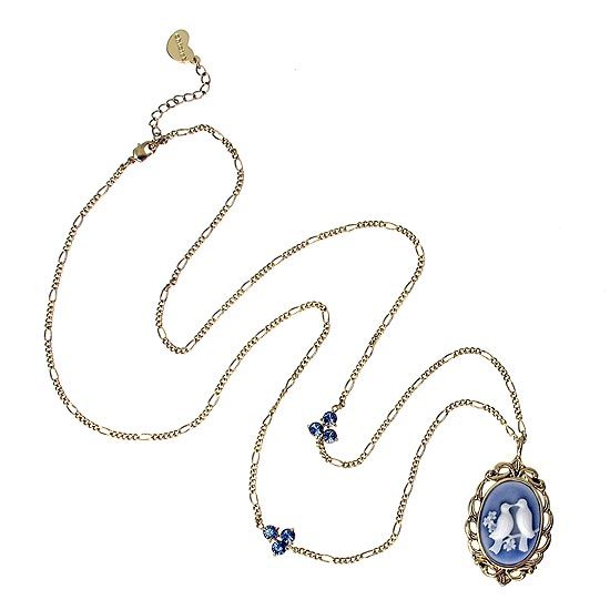 頸鍊以雅緻的立體鳥兒浮雕墜飾為主體,鍊身並綴上精巧的水晶,古典且充滿春意的設計,配戴起來典雅有氣質!