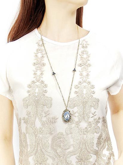 鍊身為合金材質;水晶採用Crystallized-施華洛世奇元素;頸鍊總長281/2英吋;墜飾尺寸為23mm×36mm;水晶尺寸為4mm×4mm
