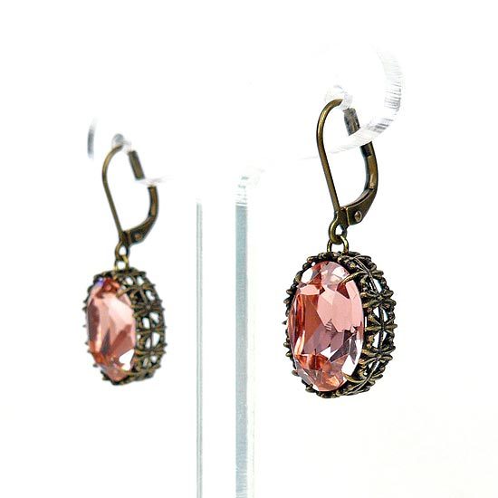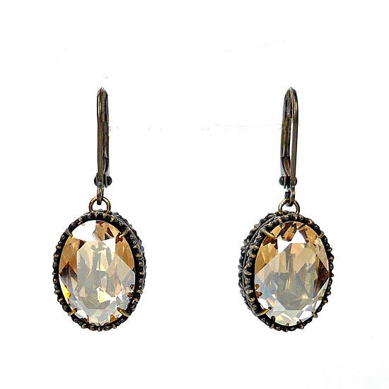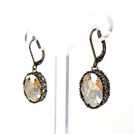 耳環以復古色調呈現,鳶尾花樣圖騰座臺四爪鑲以橢圓形水晶,精緻、古典風格襯托出耳環特色與質感,是法式風尚的百搭入門款耳環。