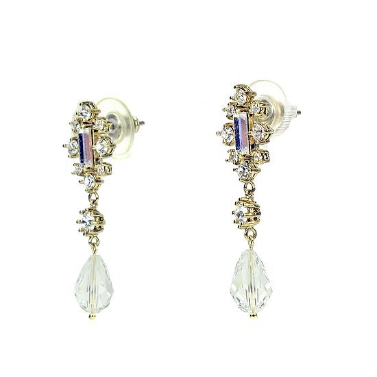 耳針為純銀鍍金材質;墜飾為合金材質;水晶部分採用Crystallized-施華洛世奇元素;耳環總長1 1/2英吋;墜飾尺寸為10mm ×16mm;水滴形水晶尺寸為7mm ×11mm
