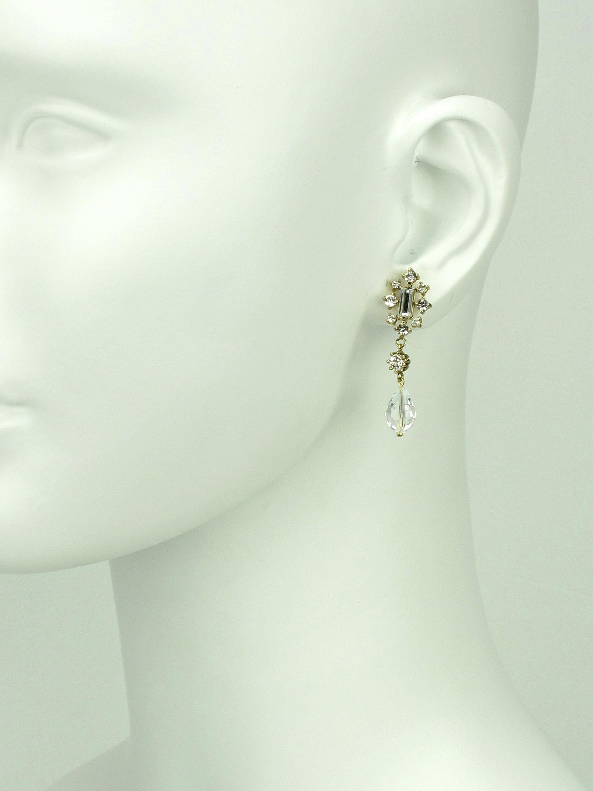 耳環以高貴典雅的墜飾搭配水滴形水晶,質感精緻,配戴起來高貴有魅力,風靡眾人目光!