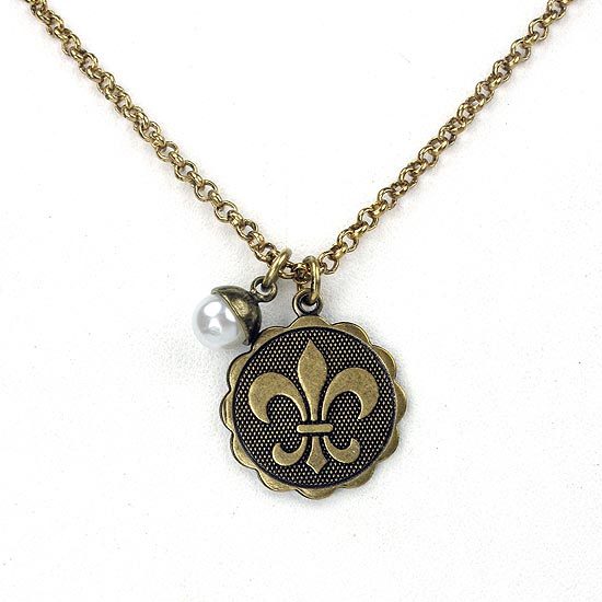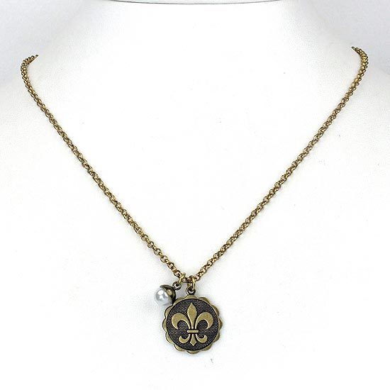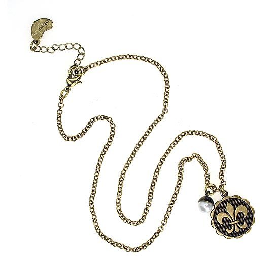 頸鍊墜飾以鳶尾花標誌搭配珍珠栗子墜飾。簡約復古款的鳶尾標誌頸鍊
