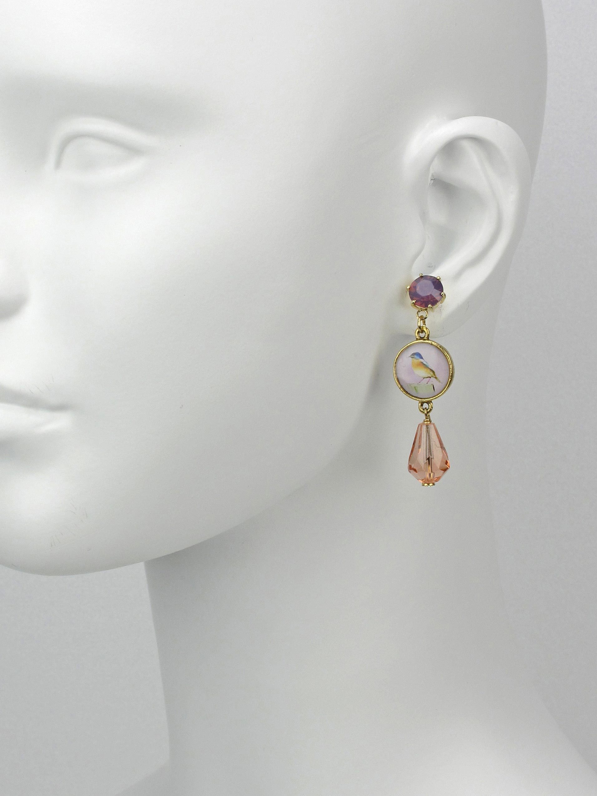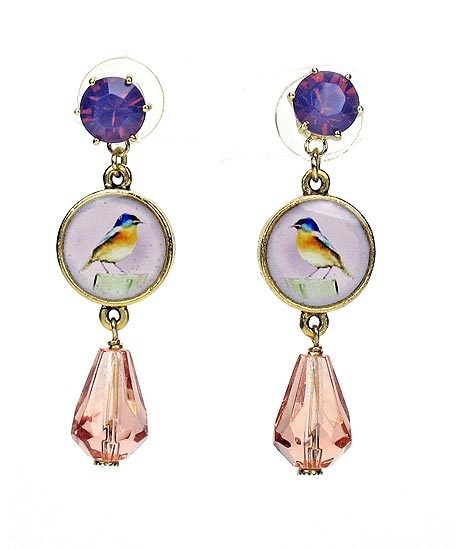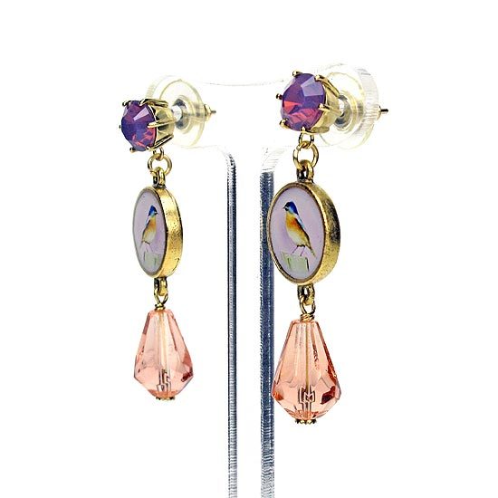 耳環以水晶搭配鳥兒圖片的墜飾,呈現出春天的美好氣息。